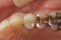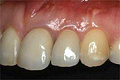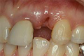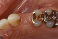 | 通常、歯が一本抜けた場合、両隣の健全な歯を削って、ブリッジしなければなりません。 | ![]() |