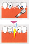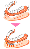 | 入れ歯は噛みづらかったり、発音発声に不便を感じたりする場合があります。入れ歯をしっかり固定します。 | ![]() |